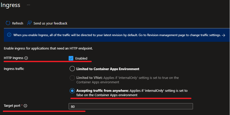 - Exposer notre container app sur le port 80