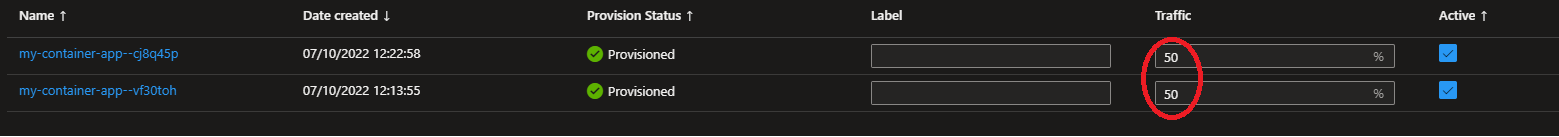 Le Traffic Splitting permet de splitter le trafic HTTP entre les 2 révisions. Testons le 50% / 50% :